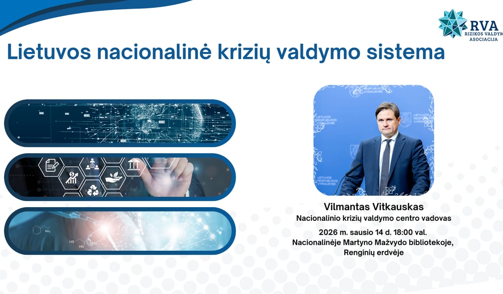 Kviečiame į RVA renginį apie krizių valdymą, kuriame Nacionalinio krizių valdymo centro direktorius Vilmantas Vitkauskas kalbės apie Lietuvos nacionalinę krizių valdymo sistemą.
